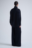 Силуэт свободный, с кулиской на поясе, позволяющей регулировать посадку.По низу брючин — скрытые кулиски, которые трансформируют форму: брюки можно носить в прямом, свободном силуэте или фиксировать у щиколотки, создавая более объемную линию.