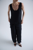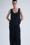 Пояс выполнен на кулиске с тонким шнуром, позволяющим регулировать посадку и сохранять ощущение расслабленной посадки без жёсткой фиксации.