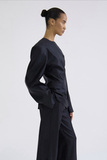 Смесь шелка и шерсти обеспечивает мягкость, комфорт и благородную фактуру ткани. Брюки хорошо держат форму, не утяжеляя силуэт. Глубокий оттенок Meteorite — почти черный с холодным графитовым нюансом — делает модель универсальной для дневных и вечерних образов.