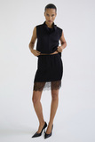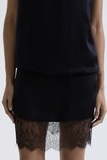 Кружево по нижнему краю продолжает характер ткани — такое же мягкое и женственное, оно естественно вписывается в силуэт и усиливает тактильность образа.
