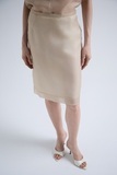 Юбка из шелковой органзы в оттенке травертина — мягком, природном, сдержанном. Матовая, полупрозрачная ткань формирует лёгкий, почти невесомый слой.