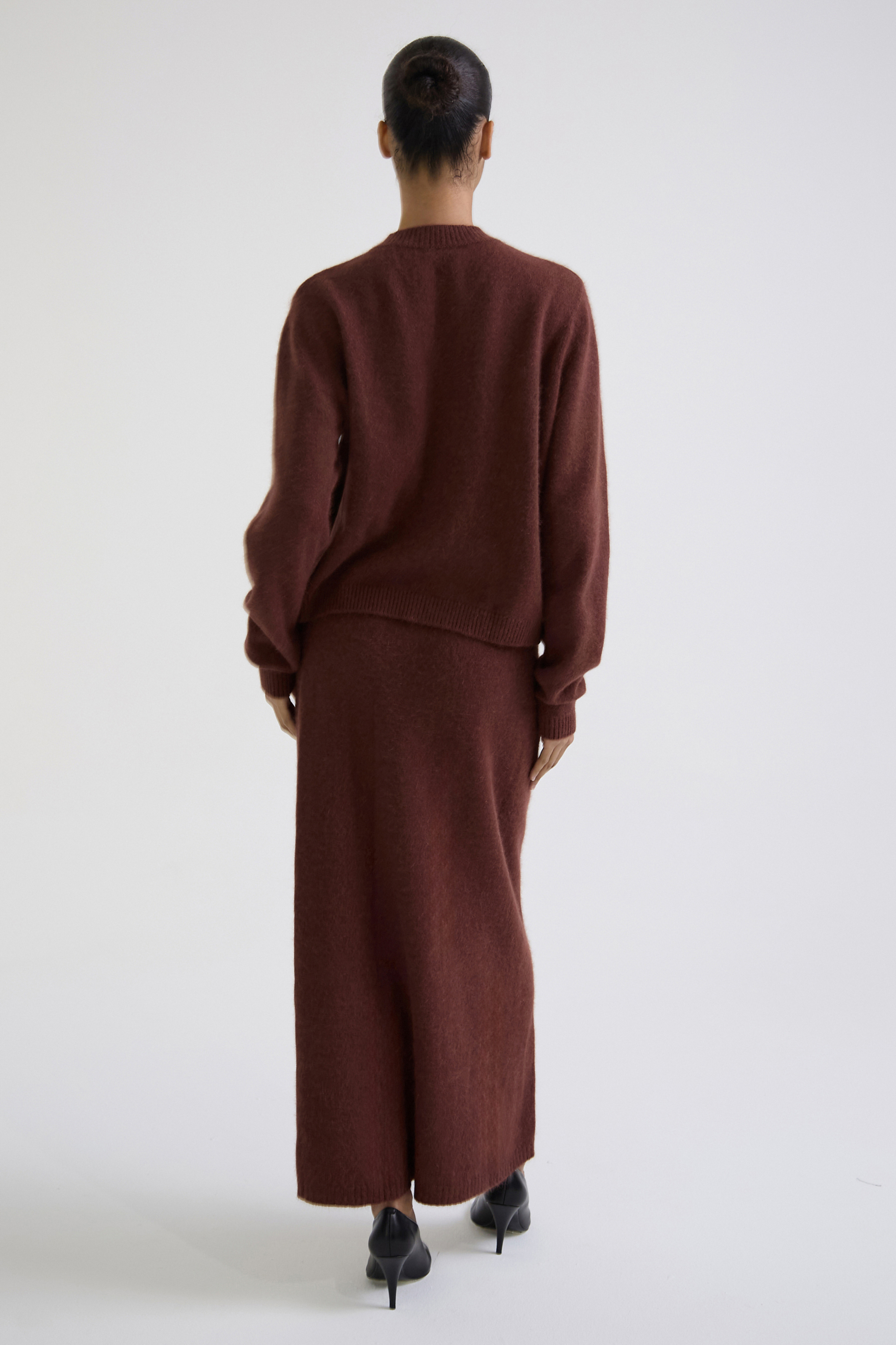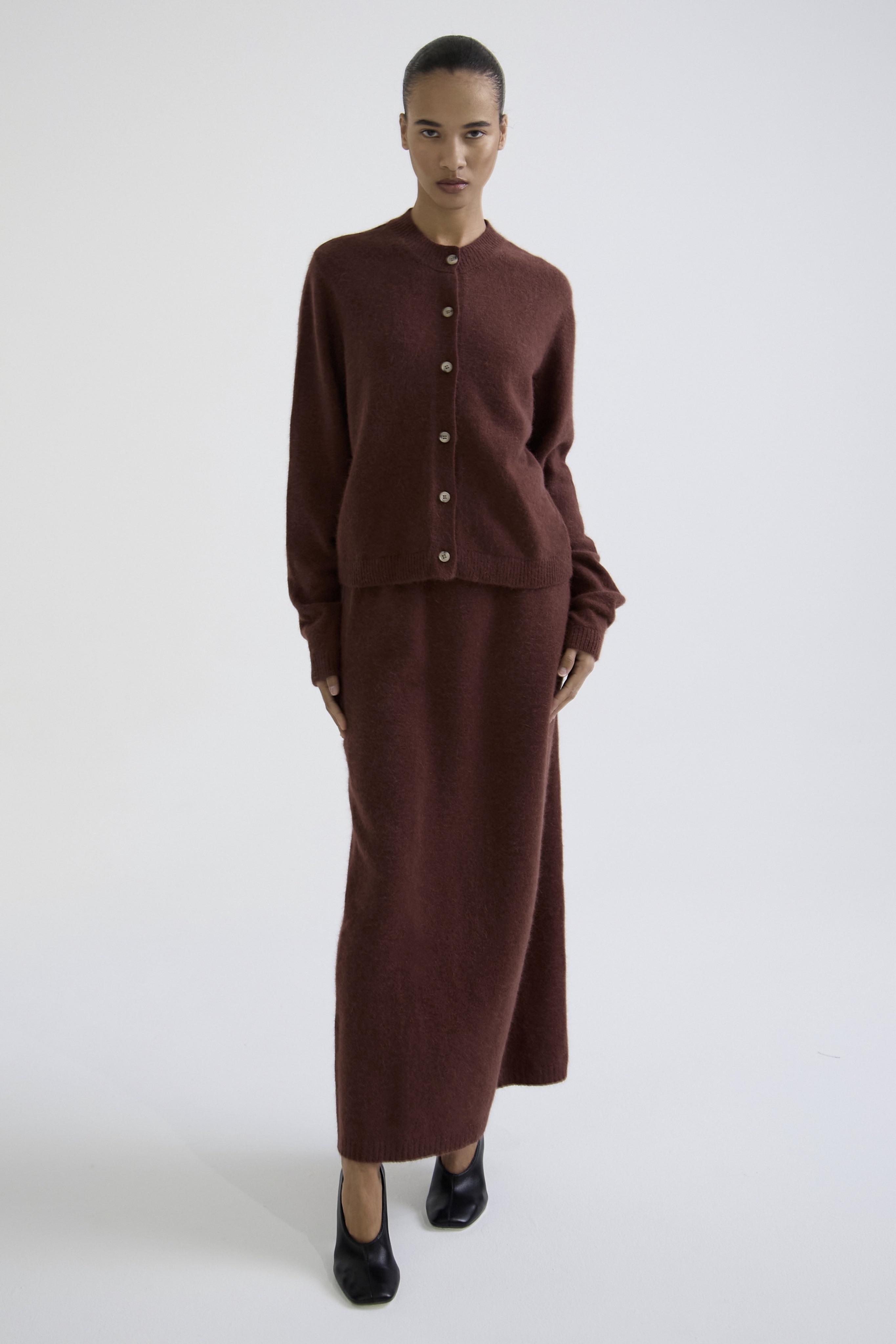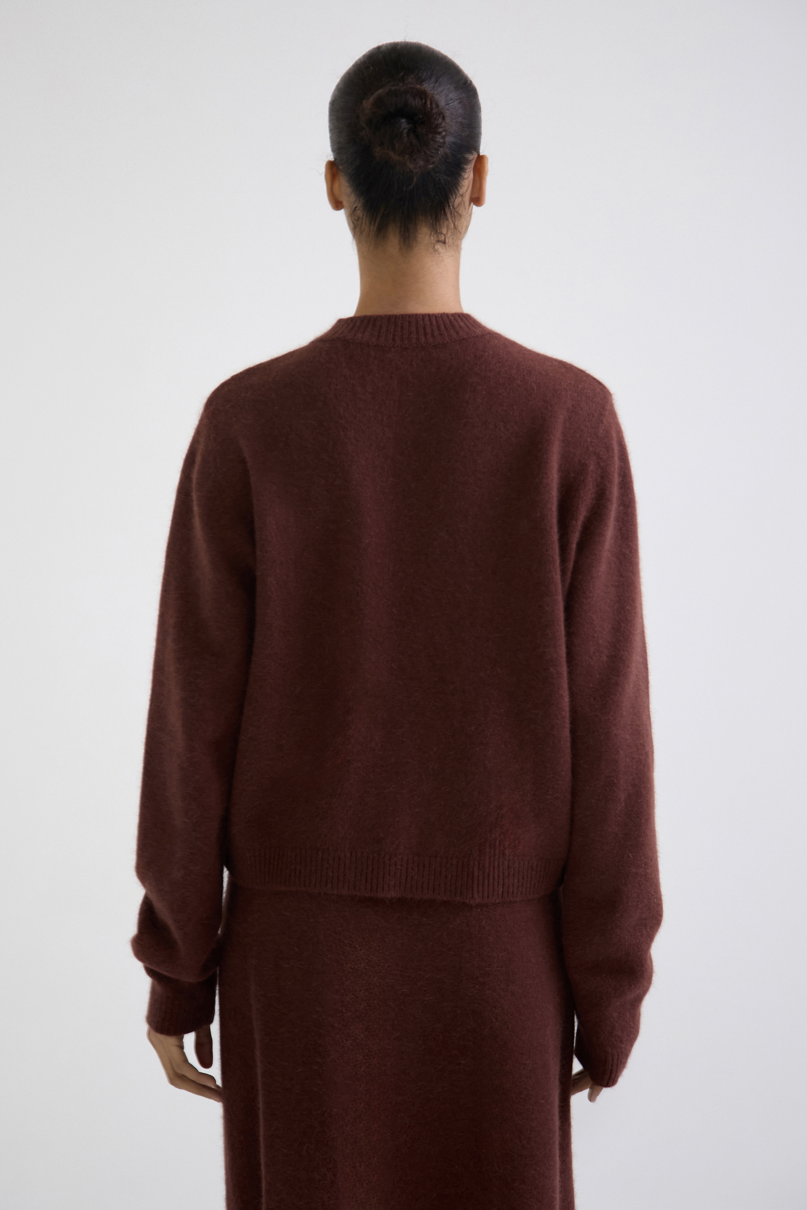 Кардиган из пуха лисы свободного силуэта в оттенке горячий шоколад.