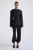Смесь шелка и шерсти обеспечивает мягкость, комфорт и благородную фактуру ткани. Брюки хорошо держат форму, не утяжеляя силуэт. Глубокий оттенок Meteorite — почти черный с холодным графитовым нюансом — делает модель универсальной для дневных и вечерних образов.